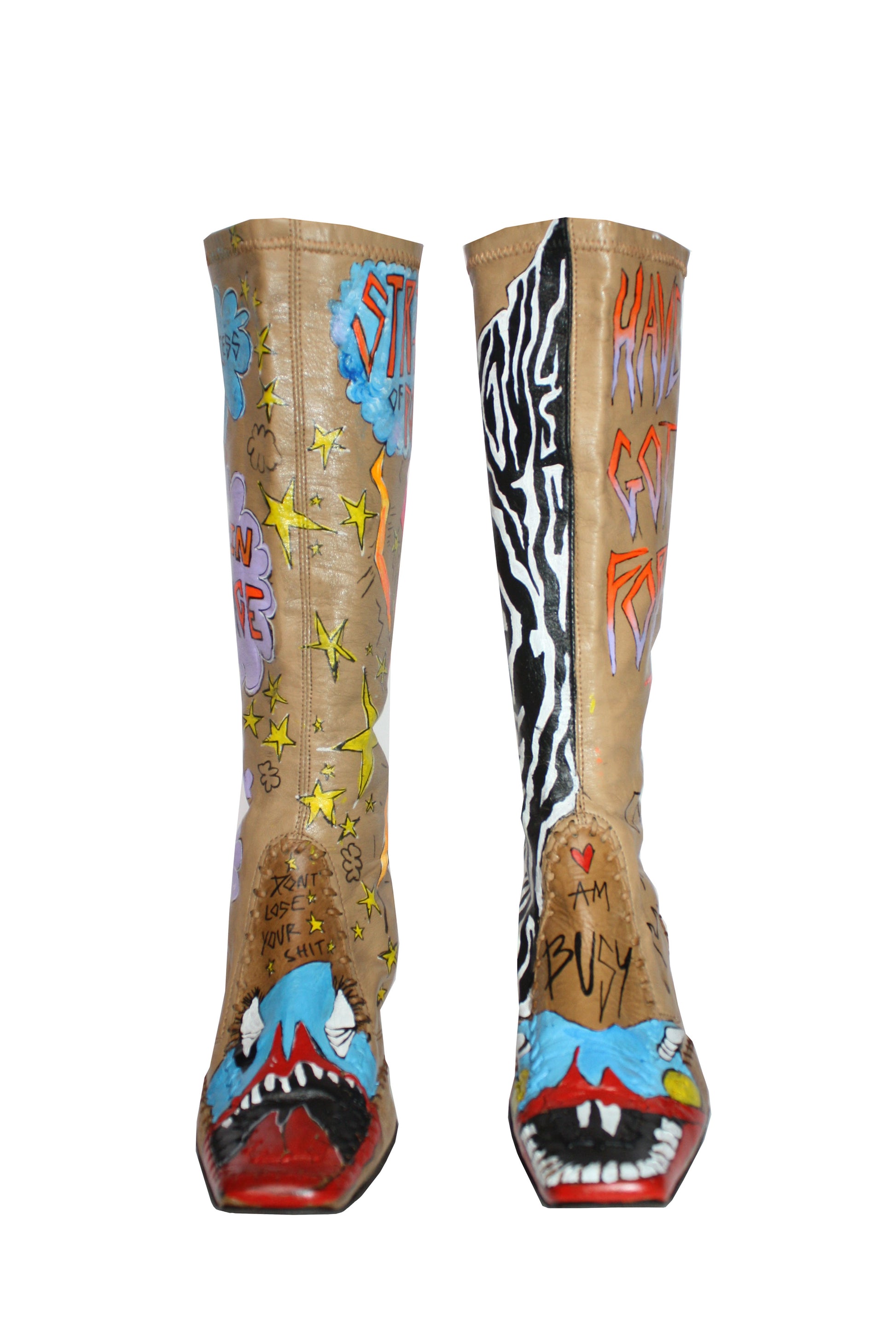 Kicking our way into boot season with the power of POSITIVITY. I mean how can you not look into those beaming, cheeky, blue faces and not feel positive? Clouds, zebras, stars and cows all collide together, now bask in your brilliance wearing them😛